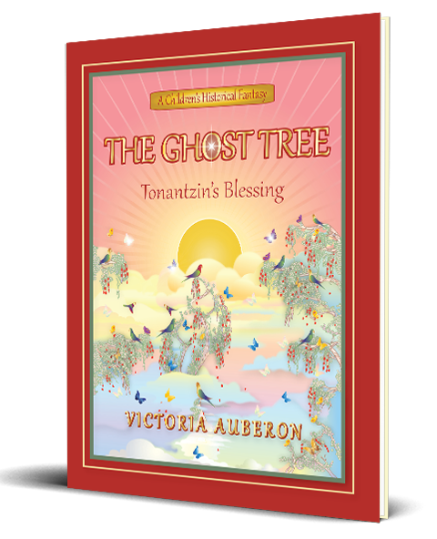 Grandmother Atl sends Nemimati and her young friend, Mishtla, to gather the scarce magical beans from which a luminous golden dye can be made. Eventually, the children stop to rest near the ruins of the mysterious palace garden where Goddess Tonantzin’s Ghost Tree of legend fortuitously appears and graciously fills their baskets. However, not until the day of the long awaited contest does Nemimati hear the miraculous tree’s appearance explained.